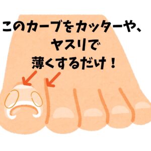 私が思うに巻き爪は爪先に圧が高くかかる人に多いのではないかな